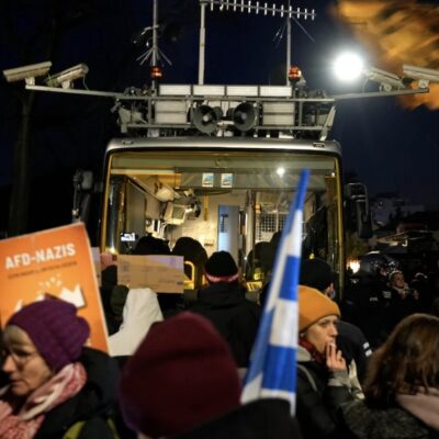 Ce dimanche 23 février, environ 80 à 120 personnes s’étaient rassemblées l’après-midi pour manifester devant le bureau fédéral de l’AfD ( Alternative für Deutschland) à Berlin. Alors que les premiers résultats des élections indiquaient que l’AFD avait environ 20% du scrutin.