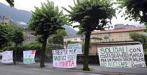 Au terme d’un procès sous haute sécurité à Bellinzone, le Tribunal pénal fédéral les a condamnés vendredi à des peines de plus de trois ans de réclusion. Une centaine de manifestants étaient présents devant le tribunal.