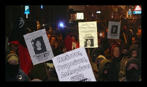 Une manifestation anti-capitaliste était organisée à Gand le 15 décembre à 20h par le CAP. Parallèlement les anarchistes avaient lancé des appels à la solidarité avec les émeutiers grecs. Entre 100 et 150 personnes étaient présentes, la grande majorité masquées. La manif a été assez courte, beaucoup de pétards, des slogans, quelques tags sur le sol et des vitrines, une banque a reçu une volée de bombes de peinture et il y a eu des bidouillages sur un ou des distributeurs de billets.