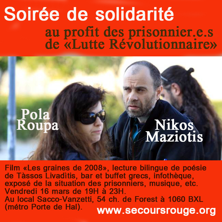 L’heure est aussi à la solidarité, avec tou.te.s celles et ceux qui luttent, avec tou.te.s celles et ceux qui sont emprisonné.e.s pour avoir mis en pratique les idéaux révolutionnaires. Ils et elles sont des milliers, enterré.e.s vivant.e.s, à témoigner chaque jour de la férocité capitaliste, à témoigner de la recherche actuelle de nouvelles avancées révolutionnaires.