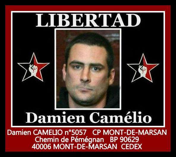 Suite à plusieurs lettres qui proposaient des ‘plans d’évasion’ au prisonnier anarchiste, des amis et camarades de Damien Camelio rappelent que les gardiens lisent systématiquement tous les courriers qui entrent et sortent de la prison. La police recherche des liens entre les anarchistes français et espagnols et les gaffes dans les lettres sont mises à charges de Damien qui en fait les frais. En revanche, les soutiens demandent d’écrire massivement à Damien pour qu’il ne soit pas isolé par son enfermement. Damien Camelio est un prisonnier anarchiste enfermé depuis le mois de février pour 3 attaques incendiaires, il a été condamné à 2 ans d’emprisonnement et maintient son engagement anarchiste en prison malgré les graves pressions des autorités pénitentiaires.