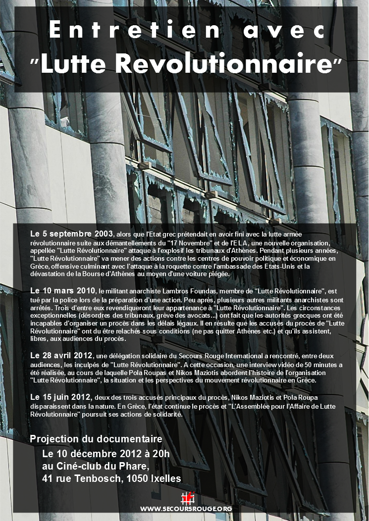 Le 28 octobre a eu lieu la première audience du procès à Grenade, de l’Audiencia Nacional (tribunal spécial anti-terroriste) devant statuer sur la demande d’extradition de de Piotr Silajev par la Russie. Piot Silajev, qui a déjà obtenu l’asile politique en Finlande, risque une peine de prison allant de 7 à 13 ans pour son engagement dans la campagne pour sauver la forêt de Khimki menacée par la construction d’une autoroute. En 2010 une manifestation militante a attaqué la mairie de Khimky (voir ici la vidéo), à la suite de laquelle Piotr est poursuivi par la justice russe. Un appel à des actions de solidarité du 19 au 21 novembre avec Piotr est lancé. Les compte-trendus d’actions peuvent être envoyés à babushka@riseup.net