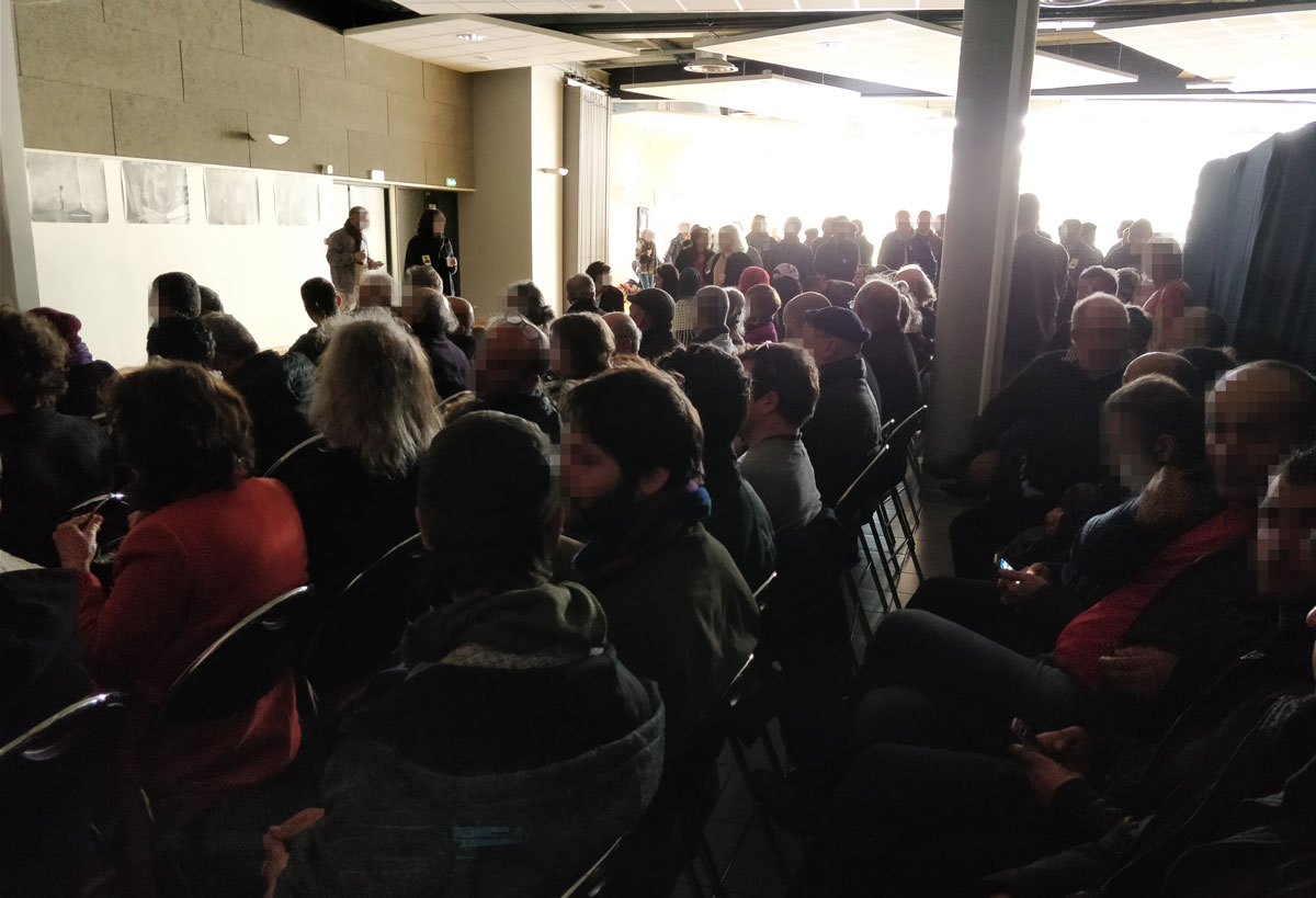 Une série d’hommages et d’interventions solidaires ont constitué la seconde partie de la journée. Plusieurs organisations indépendantistes bretonnes (dont Breizhistance et plusieurs structures associatives que Kendal avait longuement cotoyé comme les écoles en langues bretonnes, la radio en langue bretonne, etc), kurdes (dont la représentation officielle du Rojava à Paris, l’Académie Internationale YPG), Alternative Libertaire, le Parti Communiste du Finistère, le NPA, les Amitiés Kurdes de Bretagne, le Secours Rouge International (qui a rappellé l’importance des campagnes de soutien aux internationalistes et aux unités de femmes combattantes, l’association des anciens prisonniers politiques bretons, et d’autres. L’hymne de l’Armée Révolutionnaire Bretonne a été repris par la salle et des artistes bretons et kurdes ont joué quelques morceaux entre les hommages. La journée s’est terminée par la lecture d’une lettre écrite par Kendal au cas où il tombait en martyr.