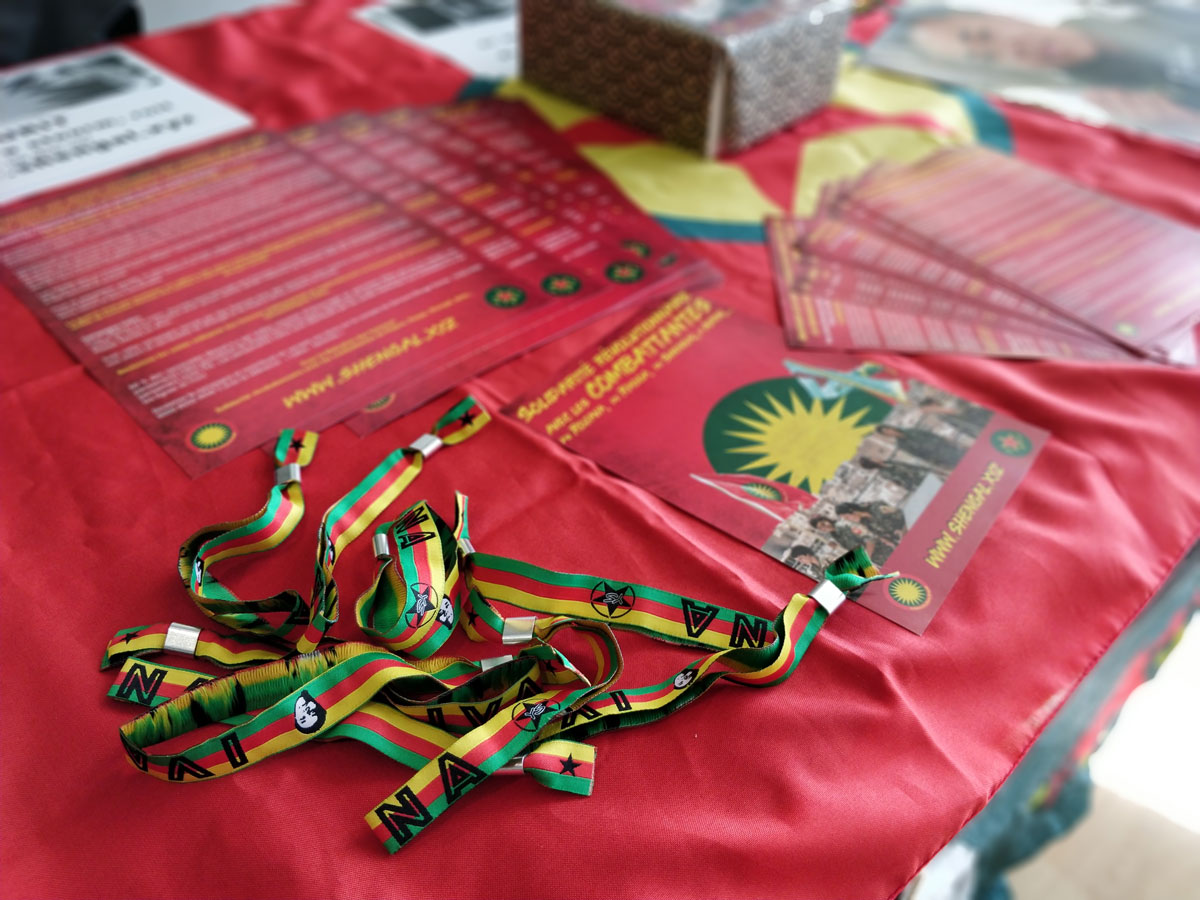 Un stand des campagnes pré-citées, qui apportent des pansements hémostatiques Celox sur les lignes de front du Rojava et de Shengal était tenu par le Secours Rouge de Belgique et le collectif de femmes bretonnes « Shengal Breizh » a permis de récolter de nombreuses donations. En tout, la tenue des stands et les bénéfices du bar ont permis de récolter un millier d’euros qui bénéficiera aux deux campagnes (rojava.xyz et shengal.xyz).