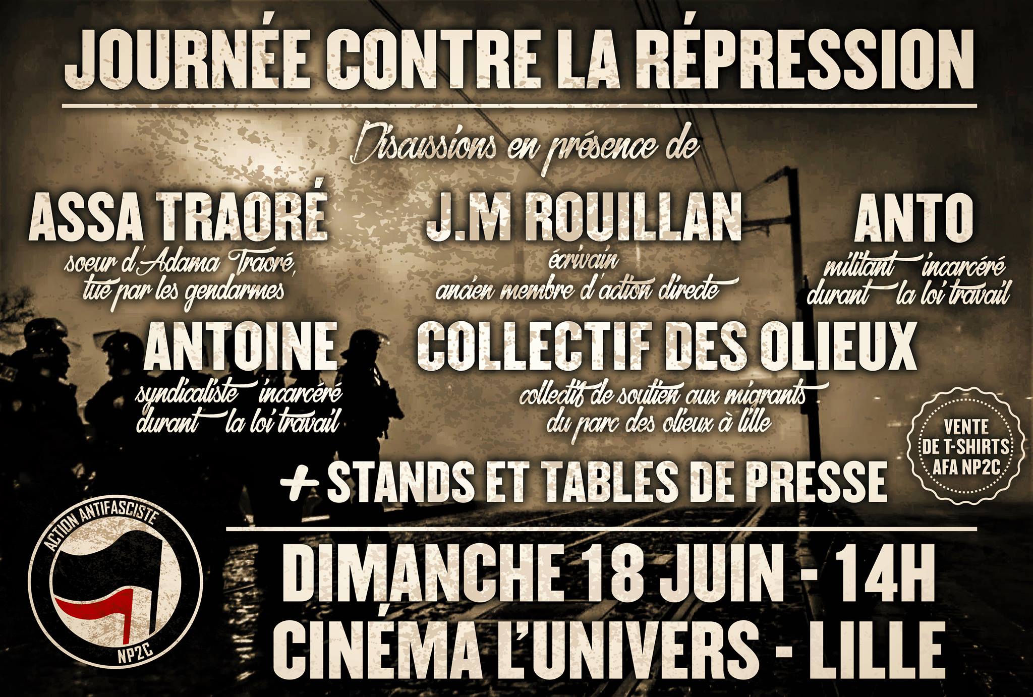 Ce 18 juin, Antifa NP2C et les Objecteurs de Croissance de Lille organisent une projection et une rencontre/discussion sur la répression et les violences policières contre les habitants des quartiers populaires, les militants révolutionnaires, les hommes et les femmes noirs, arabes, rroms, musulmans, et tout ceux que l’état harcèle. L’entrée sera gratuite (une caisse de soutien à prix libre sera proposée). Au Cinéma l’Univers, 16 rue Georges Danton, Lille.
