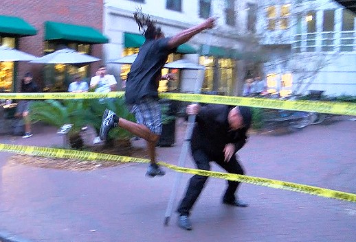 Alors que Bree Newsome, activiste qui avait retiré elle-même le drapeau confédéré du gouvernement de Caroline du Sud en 2015 (aboutissant à son retrait officiel quelques semaines plus tard), s’exprimait à Charleston, une manifestation du « Parti Sécessionniste de Caroline du Sud » s’est rassemblée devant le collège où avait lieu la conférence, ce parti d’extrême-droite milite entre autres pour la réhabilitation du drapeau confédéré. Des activistes de Black Lives Matter et des antifas ont donc contre-manifesté. Alors qu’une journaliste était en direct, un manifestant a réussi à dérober le drapeau suite à une acrobatie impressionnante. Le manifestant, Muhiyidin Moye (de Black Lives Matter Charleston) a été arrêté quelques secondes plus tard par la police, il est toujours en détention et a été placé sous une caution de 2.382$.