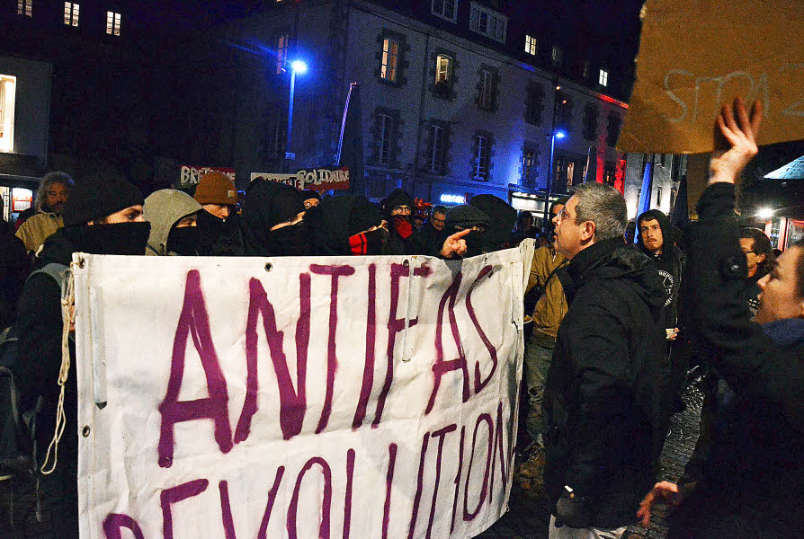 Samedi soir, une centaine d’antifascistes étaient présents près des halles de Quimper afin de protester contre la tenue de la conférence dans la ville. Un face-à-face a eu lieu avec des militants d’extrême-droite, et des agressions verbales se sont produites. Un peu avant 20 h, les présents ont été sommées d’ôter ce qui pouvait masquer leurs visages. Seuls les militants d’extrême droite ont obtempéré. Quelques 40 CRS et 20 policiers ont alors chargé les antifas en faisant usage de gaz lacrymogène. Trois interpellations ont eu lieu.