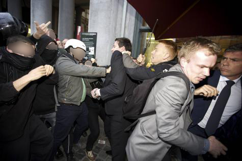 Le Conseil d’Etat ayant annulé l’interdiction de meeting du Vlaams Belang, 200 antifascistes s’étaient rassemblés à l’entrée des galeries de la Reine, là où se trouve le théâtre du Vaudeville où devait avoir lieu le meeting (le rassemblement antifasciste était également interdit). Une quinzaine de fascistes de Nation étaient venus, et des coups ont été échangés entre nazis et antifas.
