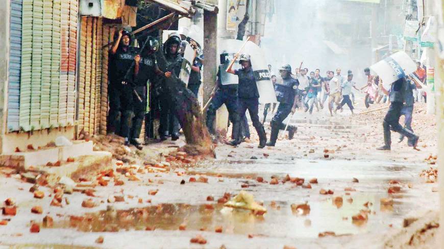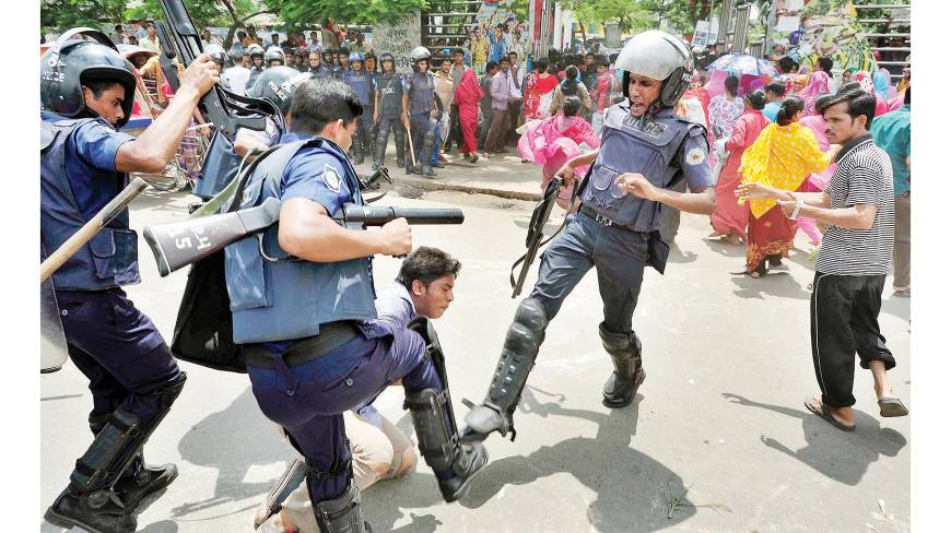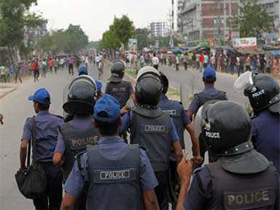 Samedi, après près d’une semaine de contestation, des milliers d’ouvriers du textile ont mené de nouvelles actions dans le cadre de leur revendications pour une augmentation du salaire minimum dans leur secteur. A Ashulia, dans la périphérie de Dakha et dans le district voisin de Gazipur, la police et les ouvriers se sont de nouveau violemment affrontés. Au moins 40 personnes ont été blessées et les autorités ont ordonné la fermeture de nombreuses usines. La circulation sur de nombreuses routes principales de la zone a été interrompue une bonne partie de la journée en raison des manifestations et des barrages érigés par les ouvriers. Lorsque la police a tenté de bouger les barricades, les affrontements se sont intensifiés. La police a fait usage de gaz lacrymogène et a chargé la foule avec des matraques. Les effectifs policiers ont d’ailleurs été multipliés dans la zone. Un total de six pelotons de la BGB (Border Guards Bangladesh) patrouillent continuellement dans la zone.