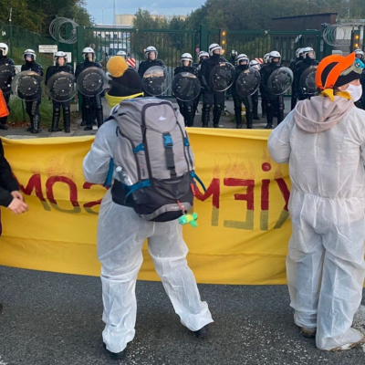 Les manifestant.e.s pour le climat et la justice écologique de Code Rouge ont une nouvelle fois ciblé cette année TotalÉnergies.