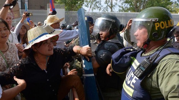 Ce mardi 11 décembre, six leaders syndicaux ont été condamnés à deux ans et demi de prison avec sursis pour avoir manifesté lors d’un large mouvement de contestations et de grève nationale en 2014 (voir nos articles ici et ici). Quatre travailleurs de l’industrie du vêtement avaient été tués lors des affrontements et une vingtaine d’autres blessés. Le tribunal municipal de Phnom Penh a déclaré les dirigeants syndicaux coupables de quatre actes de violence et de dommages matériels lors de manifestations organisées dans la banlieue de Phnom Penh. Ils ont également été condamné à payer une amende de 35 millions de riels (± 7500 euros) à deux policiers qui auraient été victimes de violences.