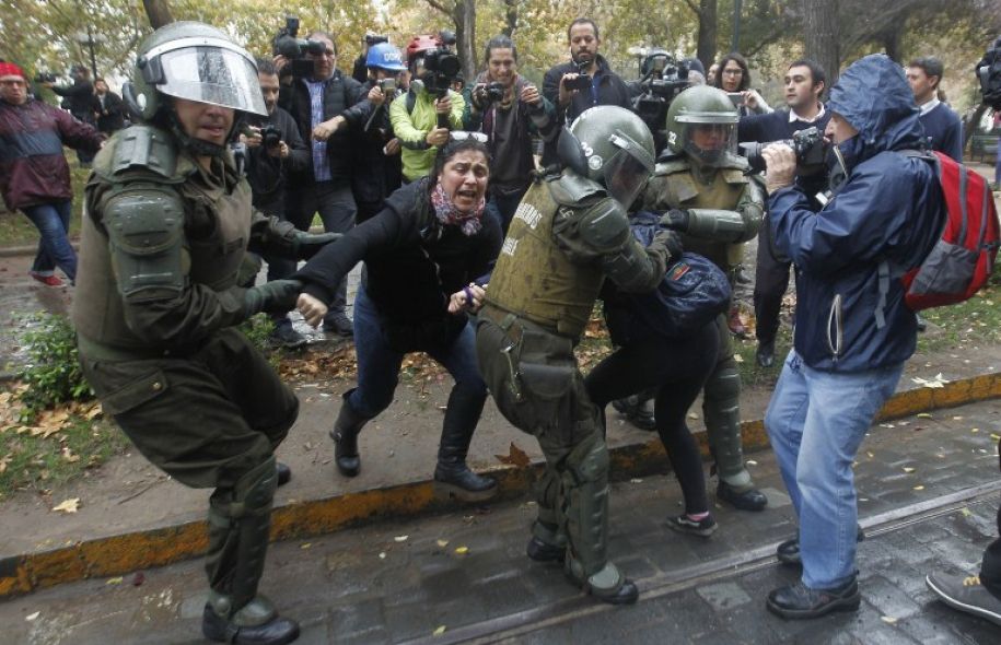De violents affrontements ont opposé jeudi forces de l’ordre et étudiants chiliens qui manifestaient à nouveau par milliers pour réclamer une éducation gratuite pour tous, promise par la présidente socialiste Bachelet. Dans le centre de Santiago, des heurts ont éclaté, certains manifestants encagoulés jetant des pierres et des bâtons sur la police qui a répliqué avec des canons à eau et des gaz lacrymogènes. Durant la manifestation, non autorisée, de nombreux commerces du centre de la capitale chilienne avaient baissé le rideau, et plusieurs stations de métro étaient fermées, tandis que la circulation a été coupée sur une partie de l’avenue Alameda, axe névralgique de la ville. Selon la police, 117 personnes ont été arrêtées et 32 policiers blessés.