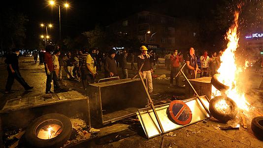Au cours d’incidents survenus à la fin de la marche, une centaine de manifestants masqués ont détruit du mobilier urbain, édifié et incendié des barricades, et affronté avec des pierres et des bâtons la police, qui les a dispersés avec des canons à eau et des gaz lacrymogènes.