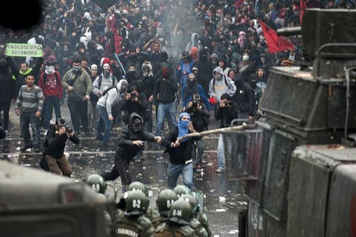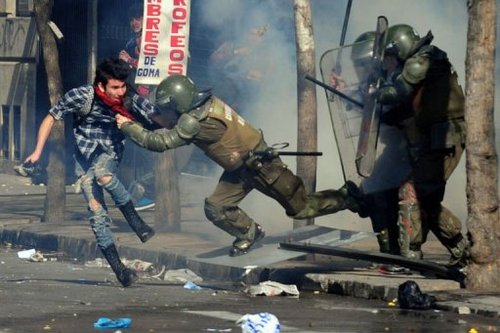 Après une première journée de grève qui s’est soldée par un bilan de 36 blessés et de 348 interpellations à l’échelle du pays, la mobilisation s’est poursuivie dans la nuit et ce jeudi. Jusqu’à l’aube, des affrontements ont opposé les groupes de jeunes et les forces de l’ordre à Santiago. En plusieurs points de la ville, les étudiants avaient érigé des barricades de pneus et de bois enflammés que les policiers ont détruit à coups de lance à eau. Ils ont également fait usage de gaz lacrymogènes pour disperser les rassemblements. Dans la matinée, les jeunes de la capitale ont été rejoint par plus de 400.000 personnes selon les organisateurs, foule qui a défilé dans les rue de Santiago. A la fin de la manifestation, de nouveaux heurts ont opposé certains manifestants à la police. Ceux-ci se sont poursuivis jusque tard dans la nuit, faisant de nombreux blessés et un mort, décédé des suites d’une blessure par balle. Selon plusieurs témoins, les policiers lui auraient tiré dessus. Cette nuit, 108 personnes ont été interpellées dans la métropole.