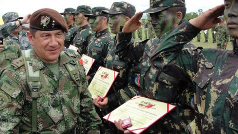 Le général Juan Pablo Rodriguez diplômant des spécialistes de la contre-guérilla