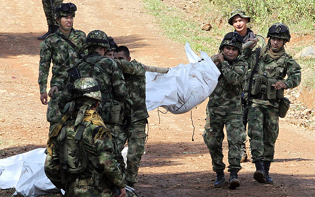 Les FARC ont a annoncé ce vendredi 22 mai, que le cessez-le-feu en place depuis décembre ne pouvait plus durer, suite au raison du raid de l’armée qui a tué hier jeudi 26 guérilleros dans le département du Cauca. Ce raid mené par une force conjointe de la 3e division de l’armée, par des avions et hélicopètes de la force aérienne, et par des embarcations de la marine remontant le Rio Guapi, intervient un peu plus d’un mois après la levée par le président colombien Juan Manuel Santos du moratoire sur les bombardements militaires à l’encontre de la guérilla. L’attaque dans le Cauca avait pour cible une unité du Front 39 des FARC accusée d’avoir mené en novembre dernier une attaque sur l’île colombienne de Gorgona dans le Pacifique au cours de laquelle un officier avait été tué. Le campement des rebelles se trouvait dans la région de Guapi, à 480 km de Bogota.