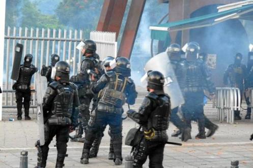 À Bogotá, une grande manifestation anti-gouvernementale s’est terminée par des affrontements avec la police. Pierres, cocktails Molotov et grenades artisanales ont été lancés sur les policiers. Huit personnes ont été blessées et au moins 71 sont détenues. Des groupes d’étudiants, des syndicalistes et des membres de mouvements politiques de gauche manifestaient ensemble, appelant tout à la fois à la négociation avec les FARC et à la satisfaction des revendications étudiantes et ouvrières.