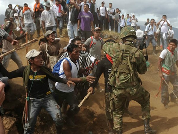 Au début du mois, des centaines de manifestants indiens ont marché vers le campement des FARC pour les exhorter à quitter la région. Ils ont ensuite encerclé la base militaire pour demander aux soldats d’abandonner leurs postes. La manifestation a tourné à la violence lorsque l’armée a tiré des coups de feu en l’air alors que les Indiens repoussaient les soldats hors de leur base. La police a ensuite fait usage de gaz lacrymogène pour forcer les manifestants à battre en retraite, blessant plusieurs d’entre eux, dont l’un mortellement.