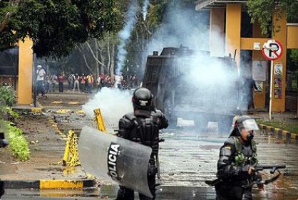 Les affrontements qui ont eu lieu vendredi dans des environs de l’Université de Cali ont fait un mort dans les rangs de l’Escadron Mobile les Antitroubles de la police colombienne. Les policiers de l’ESMAD essayaient de disperser des manifestants qui barricadaient les rues. Une prime de 20 millions de pesos a été offerte pour l’arrestation de l’auteur.