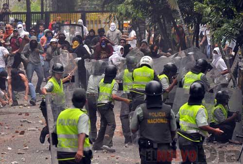 Des manifestants cagoulés ont attaqué la police et les bâtiments avec des rochers et des sacs de peinture, des inscriptions de graffitis, des plaques de rue arrachées et destruction de fenêtres et de vitrines de commerces, causant des pertes de quelque 500 millions de pesos.