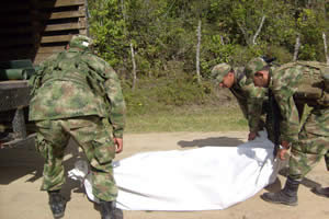 25 novembre: Attaque à l’explosif et à l’arme automatique des campements de la XXIX Brigade de l’Armée près du centre-ville d’Inzá. Trois militaires dont un lieutenant ont été tués (photo).