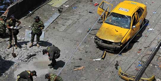 Trois soldats et un conducteur de bus public ont été tués quand le véhicule a éclaté devant le commissariat central dans la ville de Vegalarga, dans le département Huila du Sud-Ouest. En plus des policiers, une unité militaire était au commissariat lors de l’explosion, qui a blessé au moins 16 autres personnes (dont huit policiers). La ville de Vegalarga avait été prise d’assaut en 2000 par une force combinée de 350 guérilleros des 23ème et 47ème Front des FARC.