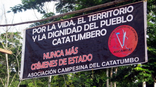 L’association paysanne du Catatumbo (Ascamcat), est une organisation fondée à la fin de l’année 2005 par les habitants de la zone rurale formée par les municipalités de Convención, Teorama, El Tarra et El Carmen. Cette région frontière avec le Vénézuela est une région stratégique riche en ressource pétrolière et carbonifère, en ressource aquifère et minérale (gisement de coltan et d’or notamment). L’Ascamcat s’appuie sur ces quelques points : La défense du territoire et le refus de tout nouveau déplacement de population ; le respect des communautés indigènes, et plus avant de tous les hommes et femmes, ainsi que des enfants du Catatumbo ; l’interdiction de la fumigation et l’arrêt de l’éradication de la coca sans plan de substitution ; la résolution des facteurs socio-économiques qui ont donné naissance à l’expansion des cultures de coca ; la défense des ressources naturelles et la préservation des écosystèmes ; la participation dans les prises de décisions concernant l’aménagement du territoire ; le respect à la vie et la défense des droits de l’homme dans la région.
