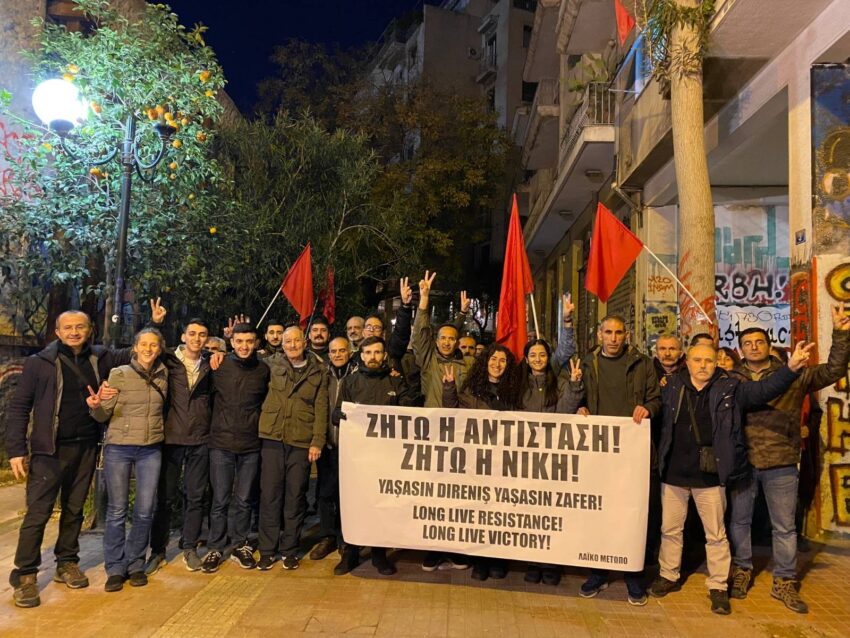 Le 19 mars 2020, suite à une vaste opération policière, 60 personnes avaient été arrêtées. Lors d’une perquisition, la policiers et les membres des services de renseignement grecs avaient découvert, dans le quartier de Sépolie, près du centre d’Athènes, une cache contenant des armes antichars, des Kalachnikov, des pistolets et des grenades à main. Finalement, onze militants et militantes révolutionnaires de Turquie ont été renvoyées devant les tribunaux. Ils étaient accusés d’être des membres du DHKP-C actifs dans la résistance armée contre le régime d’Erdogan (les armes découvertes étant, d’après le jugement, destinée à être envoyées par la mer en Turquie). Le procès en première instance avait commencé le 2 juillet 2021 et, environ 16 mois plus tard, ils étaient été condamnés à 333 ans de prison. Ils ont été libéré lors du procès d’appel qui vient de se tenir à Athènes.