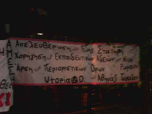 Le 19 septembre matin, deux engins incendiaires ont été placés contre des kiosques du KKE et de Syriza à Ano Patissia, un kiosque de Nea-Demokratia a également été vandalisé à Kifissia. Le lendemain de cette date, de nouvelles élections avaient lieu en Grèce. L’action était revendiquée en solidarité avec Evi Statiri et Nikos Romanos.