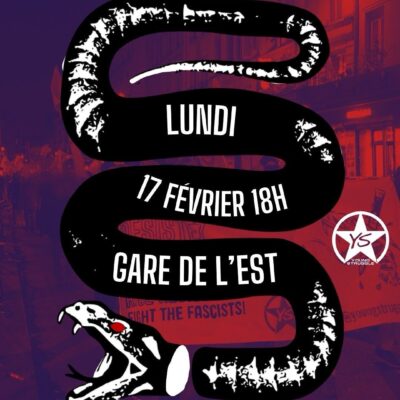 Suite à l’attaque fasciste d’hier (voir notre article) lors d’une projection organisée par Young Struggle organisée dans les locaux parisiens de l’ACTIT, l’organisation de jeunes internationalistes et socialistes appelle à une manifestation de solidarité à Paris ce lundi 17 février à 18H au départ de Gare de l’Est autour du mot d’ordre « Attaque fasciste contre […]