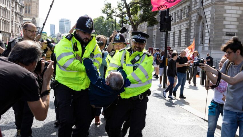 Des milliers de militants et militantes d’Extinction Rebellion (XR) se sont réunis lundi et mardi dans le centre de Londres pour donner le coup d’envoi de deux semaines de larges manifestations afin d’appeler les gouvernements à agir d’urgence contre le changement climatique. Armés de drapeaux ou de pancartes avec des slogans comme « la planète avant le profit », ils ont convergé vers Trafalgar Square, dans le centre de la capitale, où une fanfare et des discours étaient prévus. Les manifestants ont bloqué les rues menant à la place, provoquant l’intervention massive de la police londonienne. La police a déclaré ce mardi que 40 personnes avaient été arrêtées. Cela s’ajoute aux 52 personnes arrêtées lundi et 10 dimanche, ce qui porte le total à 102.