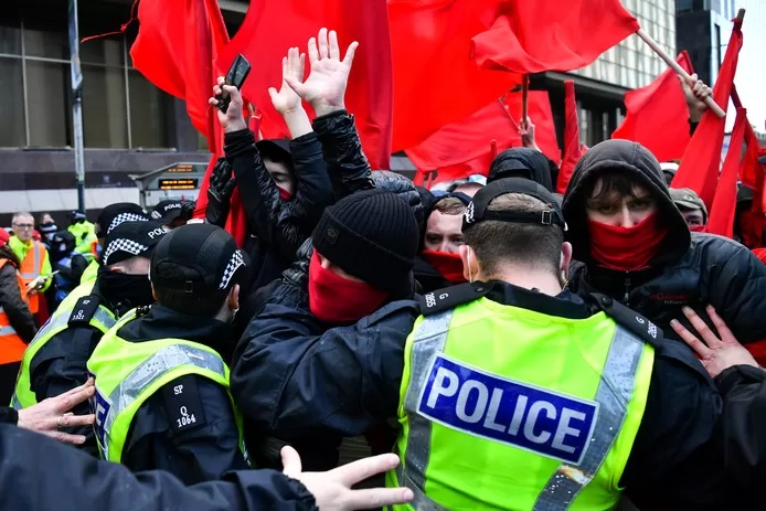 La sécurisation de la COP26 est la plus large opération policière dans l’histoire britannique. Son bilan est de plusieurs centaines d’interpellation et de 76 arrestations. Parmi ces arrestations celles de militant.e.s dont les actions impliquent forcément leur arrestation (désobéissance civile genre XR), mais aussi des militant.e.s qui se sont affrontés à la police. Des incidents ont en effet eu lieu dans le cadre des deux grandes marches qui ont traversé la ville, rassemblant des des dizaines de milliers de manifestants.