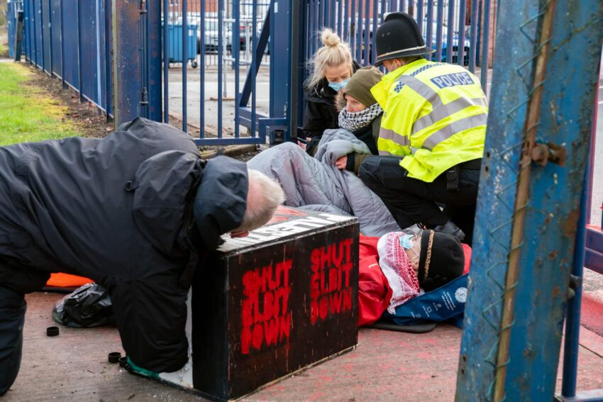 Des accusations de « dommages criminels » avaient été portées contre trois militants qui s’étaient enchaînés avec des arm-locks et avaient jeté de la peinture rouge sur les locaux de la filiale UAV Engines d’Elbit à Shenstone, dans le Staffordshire, en février 2021. L’usine produit des moteurs de drones pour une gamme de drones fabriqués par Elbit Systems, qui est la plus grande entreprise d’armement privée d’Israël. Ils ont été déclarés non coupables lundi 6 dans un procès qui s’est déroulé devant le tribunal de première instance de Newcastle-under-Lyme. Le président du tribunal, le juge Waites, a déclaré que le représentant de la Couronne (le procureur) n’avait pas prouvé que la condamnation des accusés serait proportionnée à leur liberté de protester. Ce procès, qui avait débuté le vendredi 3 décembre, est donc un revers pour Elbit Systems et les services du procureur qui avaient tenté de criminaliser l’action militante