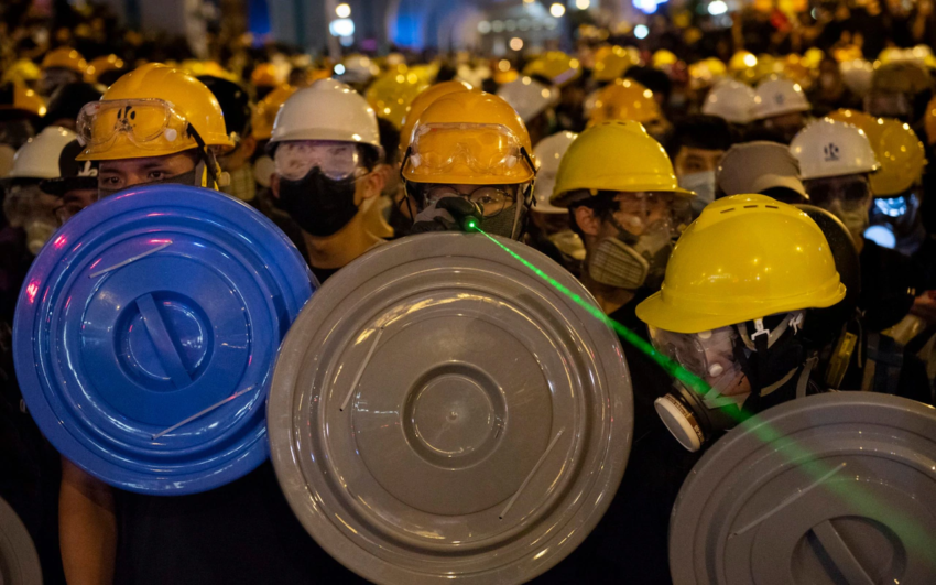 Au fil du mouvements, les manifestant·e·s se sont de mieux en mieux organisés. Ils utilisent des lasers verts pour contrer les dispositifs de reconnaissance faciale de la police. Ils vaporisent également des caméras de surveillance de la peinture ou déploient des parapluies autour des groupes en action. Les manifestant·e·s sont également organisés pour contrer les attaques policières. Dans ce cas, un groupe distrait la police avec les lasers ou d’autres lumières vives afin qu’une deuxième équipe puisse contre-attaquer. Un troisième groupe coordonne la formation et un quatrième à l’arrière maintient le moral de leurs camarades en jouant du tambours et en criant des slogans. Enfin des éclaireurs et les coureurs distribuent fournitures et nouvelles entre les différentes lignes de front. Par ailleurs, certains manifestants se sont formés au Parkour pour évaluer la situation en hauteur ou lancer des objets dissuasifs sur la police. D’autres travaillent ensemble pour étouffer les gaz lacrymogènes, déposant rapidement des cônes de signalisation sur les grenades fumantes, puis leur versant de l’eau par la buse.