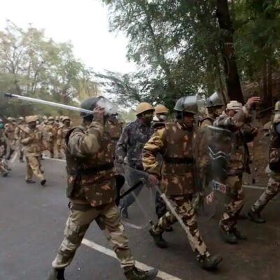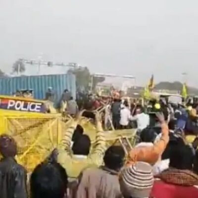 Dimanche 3 janvier, la police a lancé des bombes lacrymogènes et utilisé des canons à eau pour arrêter les agriculteurs qui voulaient forcer ses barricades dans le village de Masani près de Dharuhera sur l’autoroute Delhi-Jaipur.