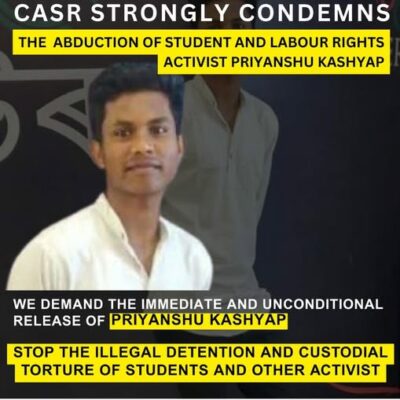 Ancien étudiant du département d’histoire de l’université de Delhi et militant pour les droits humains, Priyanshu Kashyap a été arrêté par l’Agence nationale d’investigation (NIA) le 29 juillet 2025. Il avait été interpellé par l’Agence d’investigation criminelle de l’Haryana dans le district de Hisar entre le 26 et le 27 juillet dernier. Militant d’origine adivasi […]