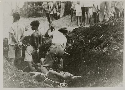 Entre 500.000 et trois millions de communistes, de sympathisants communistes, de personnes suspectées de l’être, ou d’appartenir à des groupes sociaux jugés favorables aux communistes (athées, descendants de l’immigration chinoise ou indienne, etc.) sont assassinés par balle, baïonnette ou décapitation. Un autre million de communistes et de sympathisants furent emprisonnées ou astreintes à des travaux forcés dans les plantations, les mines et les chantiers de construction, cependant que leurs femmes furent violées puis contraintes par milliers à la prostitution, ce que reconnaît le rapport de 2012 de la Commission indonésienne des droits de l’Homme.