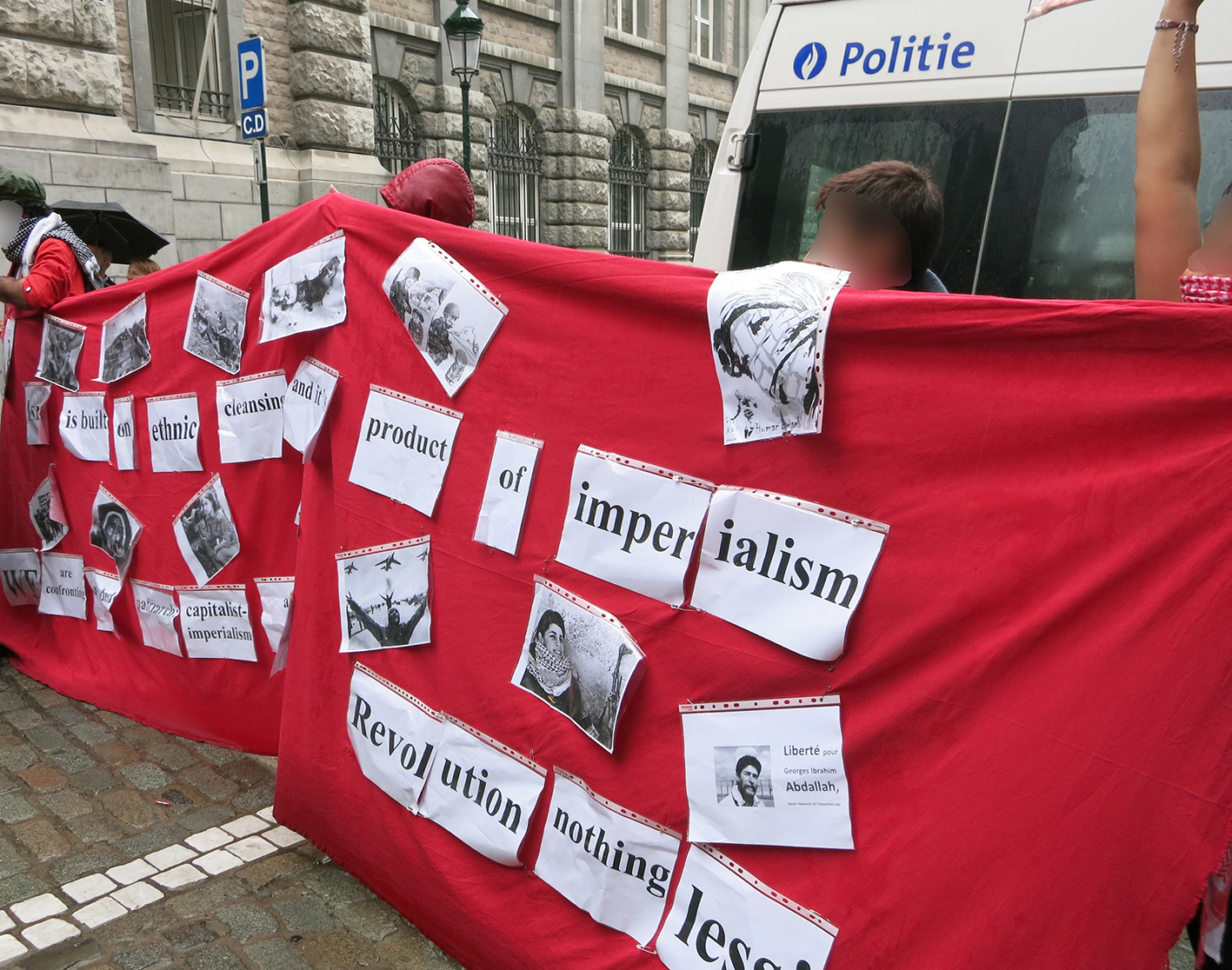 Quelques 500 personnes ont participé le 6 août à un rassemblement devant le ministère des affaires étrangères à Bruxelles. Les organisateur (« Urgence Gaza ») avait envoyé une invitation au Comité des iraniens de Bruxelles dont l’opposition au Régime islamique est bien connue. Les Iraniens (accompagnés de sympathisants kurdes et belges) sont venus à cette manifestation avec des banderoles portant ces slogans : Israël est un nettoyage ethnique et une production de l’impérialisme / Affrontons-nous au patriarcat, à l’impérialisme capitaliste et au fondamentalisme religieux/ La révolution ou rien. Ces banderoles étaient illustrées de photos de l’histoire de la Résistance palestinienne, de Leila Khaled, et de Georges Ibrahim Abdallah.