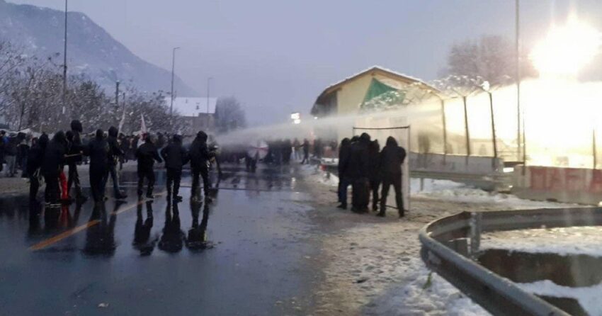 Mardi 8 marquait le 16e anniversaire des affrontements à Venaus, sur le chantier du premier projet TAV. Une manifestation a eu lieu à cette occasion dans la vallée, sous la neige. La veille, une centaine d’opposants au TAV avaient attaqué le chantier de San Didero, lançant des pierres et tirant des fusées sur les forces de l’ordre défendant le chantier. Les manifestants qui, divisés en deux groupes ont attaqué le chantier des deux côtés, depuis la carrière et vers l’autoroute. Les carabiniers ont fait usage de lances d’incendie et de gaz lacrymogènes.