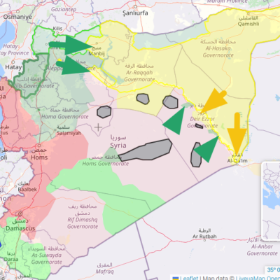 A l’ouest de la Syrie, les positions du régime s’effondrent sur tous les front. L’ANS attaque le Rojava sur le front de Manbij mais les SDF améliorent leurs positions sur les autres fronts.