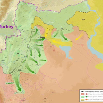 La grande offensive islamiste contre le régime permet aux forces kurdes de désenclaver les territoires du Rojava démocratique isolés à l’ouest de l’Euphrate, mais élève le danger d’une intervention de la Turquie.