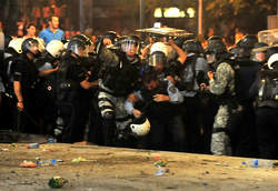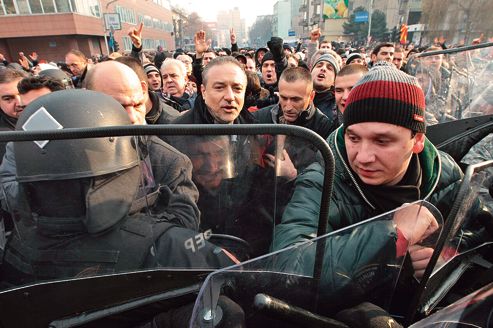 Le parlement de la Macédoine a approuvé le budget 2013 lundi soir. Des affrontements ont eu lieu devant le bâtiment entre des manifestants et des policiers mais aussi entre des manifestants et des groupes pro-gouvernementaux qui s’en sont pris aux députés de l’opposition. Onze policiers ont été blessés et au moins trois manifestants arrêtés.