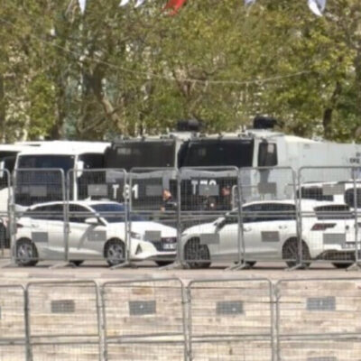La place Taksim, dans le quartier central de Beyoğlu à Istanbul, a été bouclée par la police à l’approche de la Fête des Travailleurs, le 1er mai.