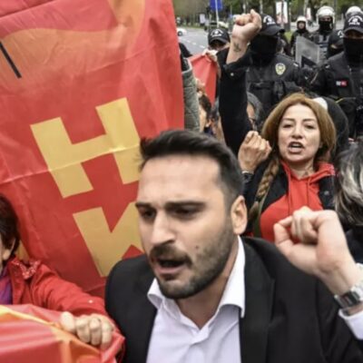 En Turquie, les célébrations du 1er-Mai se tenaient cette année dans un contexte de crise politique à laquelle s’ajoute une crise économique marquée par l’inflation et la chute du pouvoir d’achat des salariés. À Istanbul, la plupart des syndicats et des partis politiques s’étaient donné rendez-vous sur la rive asiatique, mais d’autres manifestants ont tenté de marcher vers la célèbre place Taksim, interdite aux rassemblements. Près de 400 manifestants ont été arrêtés.