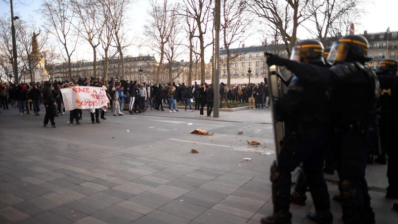 Quelques centaines de manifestants se sont rassemblés hier mercredi en fin de journée dans le nord de Paris pour dénoncer les violences policières en lien avec l’affaire Théo, donnant lieu à des quelques heurts avec les forces de l’ordre et des dégradations Sous le métro aérien Barbès, étroitement quadrillés par les forces de l’ordre et débordant sur la chaussée, des manifestants ont allumé des fumigènes, brûlé des poubelle, jeté des projectiles contre les policiers, qui ont chargé et en effectué des tirs nourris de gaz lacrymogènes. En scandant « tout le monde déteste la police » ou « la police est raciste », des groupes ont tenté à plusieurs reprises de quitter le carrefour Barbès pour partir en cortège, avant d’être refoulés au moyen de lacrymogènes. Des groupes de manifestants se sont alors dispersés du côté de République, entre le Cirque d’hiver et le quartier du Marais.
