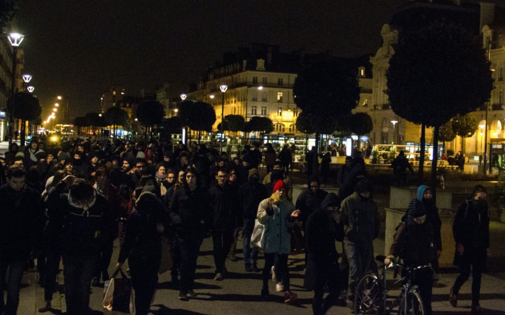 Environ 400 personnes ont répondu présent au rassemblement antifaciste vendredi soir place Viarme, à Nantes. Tenue à distance par un important déploiement de forces de l’ordre, ma manifestation n’a pas pu approcher de la salle où se tenait le meeting. Au cours des tentatives de débordement du dispositif policiers par les antifas, des projectiles ont été lancés sur les forces de l’ordre, des véhicules et des dispositifs publicitaires ont été dégradés, des murs ont été tagués et deux vitrines de banque ont été brisées. Six interpellations ont eu lieu, débouchant du quatre gardes à vue.