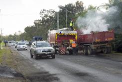 Toute la journée d’hier mardi, la route qui longe la commune du Mont-Dore a été le théâtre d’accrochages entre des dizaines de jeunes tapis dans les brousses et quelques 150 gendarmes mobiles, équipés de véhicules blindés. Le jeunes lançaient des pierres et tiraient avec des fusils de chasse, deux gendarmes ont été légèrement blessés. Le matin, un minibus a délibérément percuté un véhicule de gendarmerie, tandis qu’aux abords de la tribu gisent des carcasses de voitures brûlées et des poteaux de lampadaires, sciés par les émeutiers. Une quinzaine de jeunes ont été interpellés. Le site de l’usine a par ailleurs été la cible de saccages de bureaux, de destructions de camions et d’incendies de véhicules dans la nuit de dimanche à lundi.