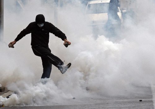 Mais vers 16h, à la fin du défilé des manifestants cagoulés se sont précipité sur un barrage de CRS chargé de garder la préfecture. Une barricade de palettes et de pneus est rapidement dressée devant les grilles, et incendiée. Durant près de trois heures, des dizaines de manifestants ont lancé pierres, de cocktails Molotov sur les forces de l’ordre qui ripostaient à coups de grenades lacrymogènes. Au total, dix-sept CRS et deux gendarmes ont été blessés dont l’un sérieusement. Le commandant de la gendarmerie de Corte a dû être transporté à l’hôpital. Deux policiers en civils, pris à partie par les manifestants alors qu’ils tentaient de prendre des photos. Ils ont pu être évacués in extremis avec l’aide des pompiers.