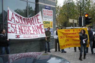 Des rassemblements ont été improvisés immédiatement un peu partout en protestation contre cette vague répressive. A Bruxelles, notre Secours Rouge a participé aujourd’hui à un rassemblent organisé à 15h sur les marches de la Bourse par l’EGK.