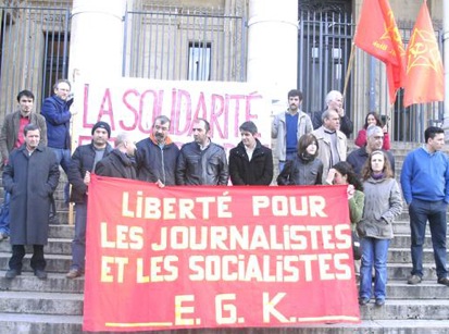 Les unités ‘anti-terroristes’ de la police turque ont attaqué dans six provinces plusieurs organisations ouvrières, progressistes et révolutionnaires, parmi lesquelles la Plateforme Socialiste des Opprimés (ESP), le périodique Atılım newspaper, l’Académie marxiste Nazim Hikmet, l’Association des Femmes Travailleuses (EKD), l’Association de la jeunesse socialiste (SGB), l’organisation d’éducation populaire (BEKSAV) et d’autres organisations accusées par l’appareil policier-judiciaire fasciste d’être l’appareil légal du parti communiste marxiste-léniniste MLKP (illégal). Au total, entre 50 et 60 personnes ont été arrêtées, à Istanbul, Izmir, Hatay, Mersin et Adana. Ont été arrêtés: Çetin Poyraz, Figen Yüksekdağ et Önder Öner (journalistes à Atilim), Hacı Orman, président de BEKSAV, Alp Altınörs, coordinateur de l’Académie Nazım Hikmet, Cem Dinç, le président du syndicat des constructeurs de navires Limter-İş Münevver İltemur, Tuğba Gümüş et Fatma Siner (EKD), Serap Ünal, Hacer Koçak, Erden Fesli, Esat Süner, Seher Kilisli, Deniz Melih Özşen; dans Izmir Şerife Erbay (SGD), Hatice Aydemir, Hasan Ozan, İrfan Gerçek, Zelal Armutlu, Bülent Kapar, Abbas Duman, Erhan Çalparmak, Tarık Tepeli, Kurtuluş Sarıkaya, Gökben Keskin, İlker Tatlı Pınar, Alihan Alhan, Yüksel Bulut, Aşur İşbilir, Yeşim Sönmez, Hülya Gerçek, Hızır Uzundağ, Sevilay Ateşçi, Seval Gündoğan, Yasemin Tuğcu, Barış Çırpan et İbrahim Yapıcı et d’autres militants de l’ESP parmi lesquels Muhsin Çobanoğlu, un candidat à la mairie soutenu par plusieurs groupes de la gauche.